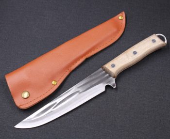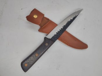 Faca 29cm Churrasco e Pesca Cabo Madeira C/ Bainha De Couro DJ400