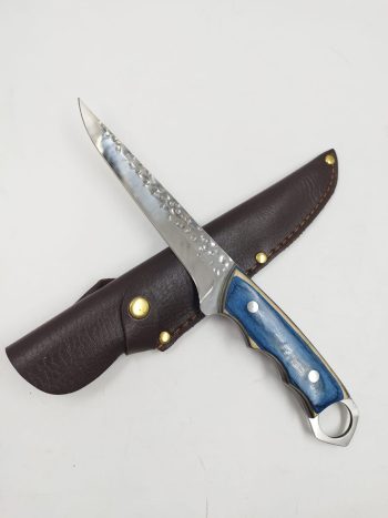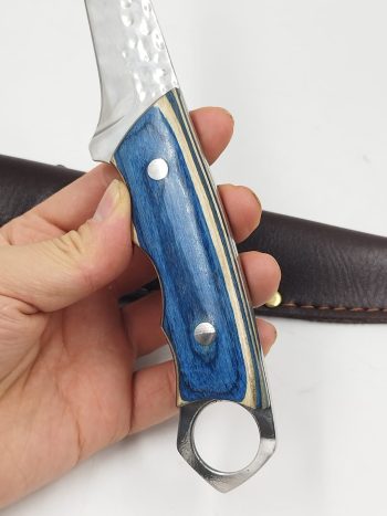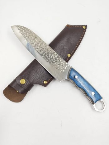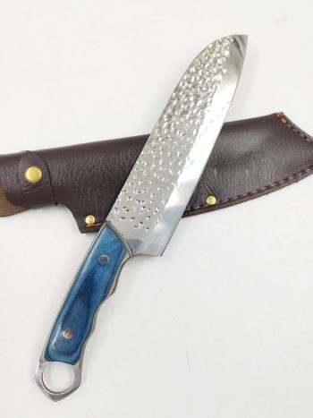 Faca de cozinha ondulada martelada em aço Damasco Con Bainha Couro
