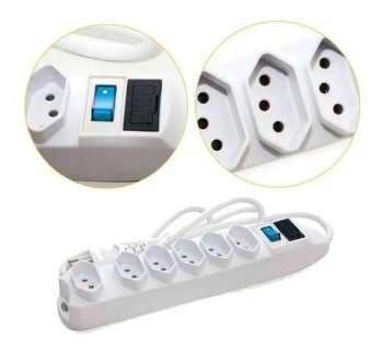 Extensão elétrica 3 Metros 6 Tomadas Compacta Filtro de Linha
