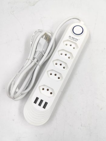 Extensão Elétrica B-Max BM-8695 5 Tomadas E 3 Usb Filtro De Linha Régua 2m Cor Branco