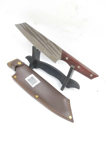 Faca Cutelo Aço Com Bainha Couro Cabo De Madeira Cozinha Cor Prateado