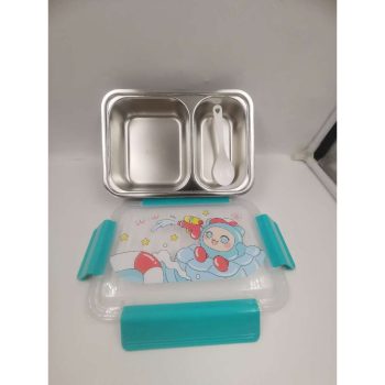 Marmitinha Marmita Infantil 20x15x6cm Térmica Vedável Lancheira Inox Com Garfinho 2 Compartimentos Com Alça Multiuso