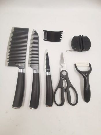 Conjunto Kit faca Preta 6 itens Inox M??rmore Para cozinha Churrasco Descascador de Legumes
