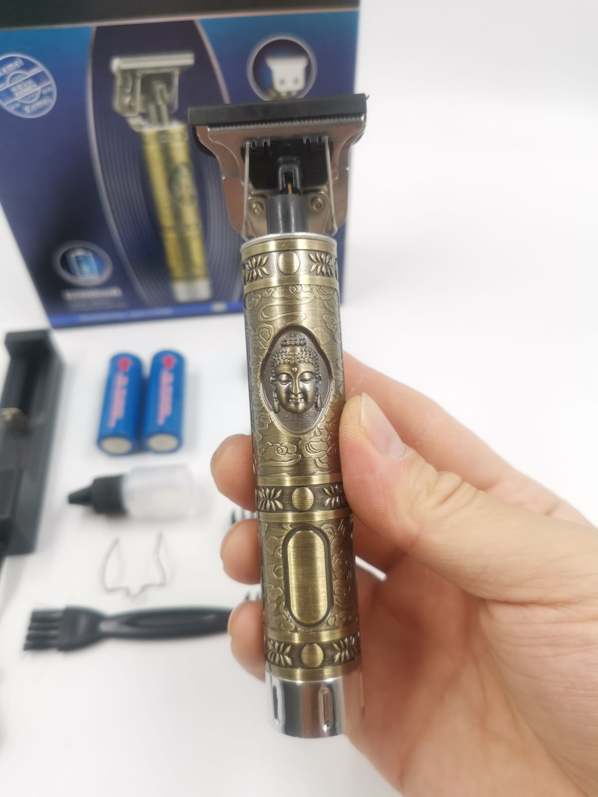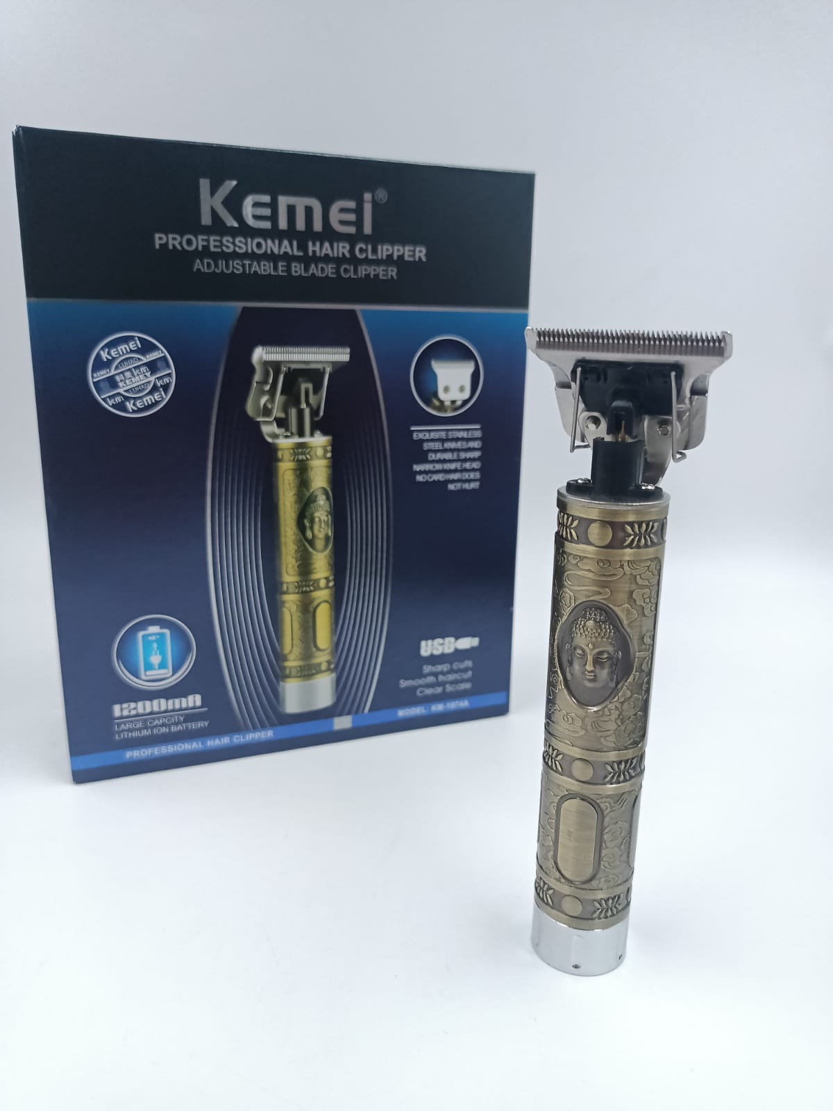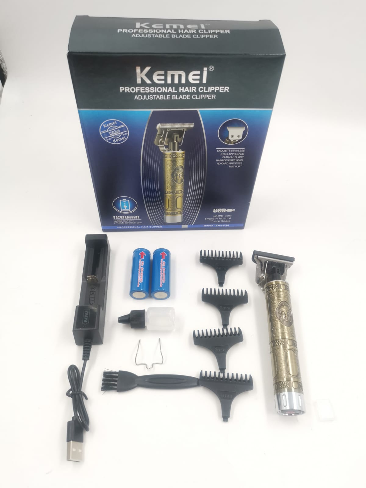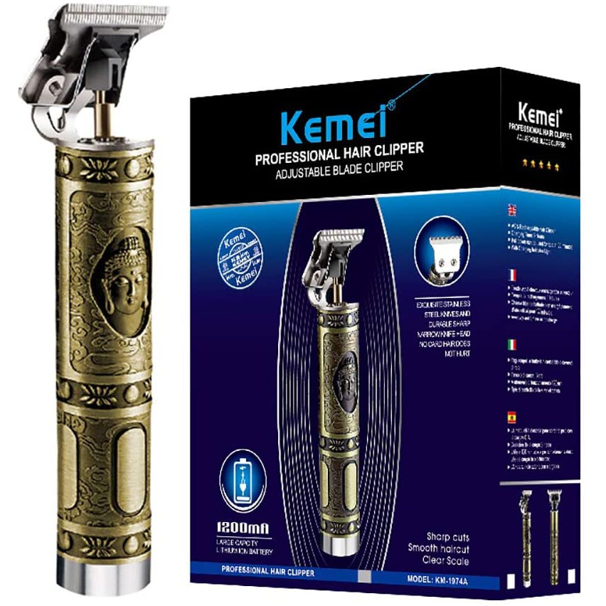 A “maquina 1974a” refere-se à máquina de acabamento Kemei KM-1974A, um aparador de cabelo e barba profissional com design vintage, lâminas de aço inoxidável e motor potente. Ela possui bateria recarregável de lítio e é comercializada como um produto de alta qualidade, sendo bivolt para carregamento e ideal para cortes precisos.