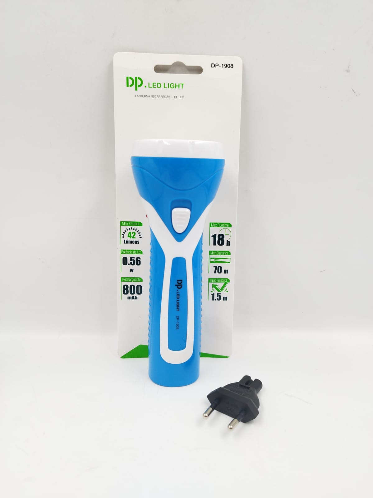 – Recarga: Conecte o plug da lanterna em uma tomada 127-240V, a lâmpada piloto acenderá indicando a recarga. O tempo recomendado pelo fabricante é de no máximo 12 horas. Não utilize enquanto estiver recarregando.