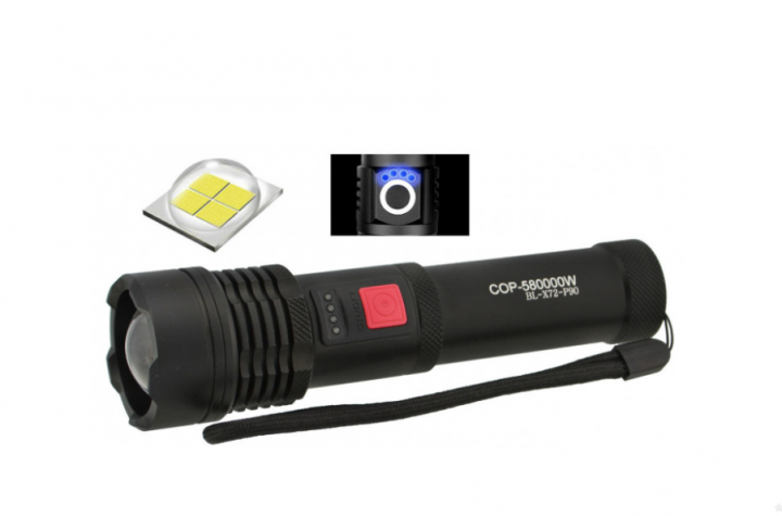 “YT-X72-P90” parece ser uma referência a uma lanterna LED tática militar P90 ultra potente, caracterizada por sua alta luminosidade, múltiplos modos de iluminação, zoom ajustável e recarga via USB. O modelo utiliza a tecnologia de LED P90 e pode ser alimentado por bateria recarregável.