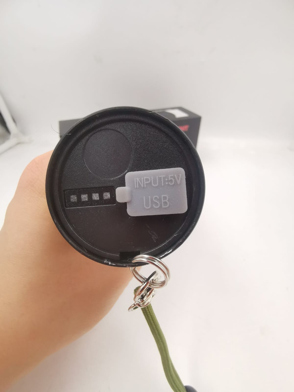 – Baterias recarregáveis: a lanterna funciona com 2 baterias recarregáveis, que podem ser carregadas por cabo USB.