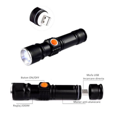 1 Mini Lanterna tática de led T6 USB